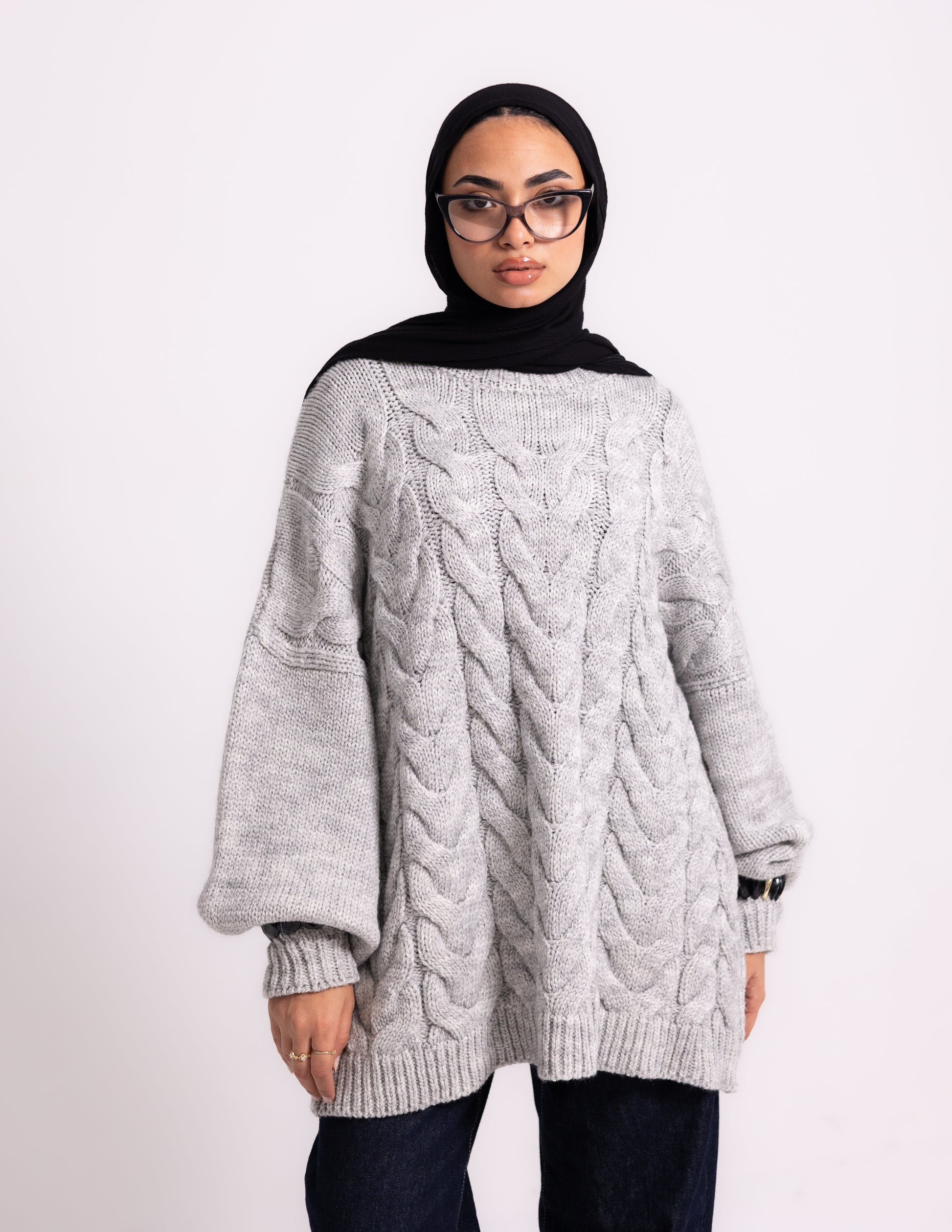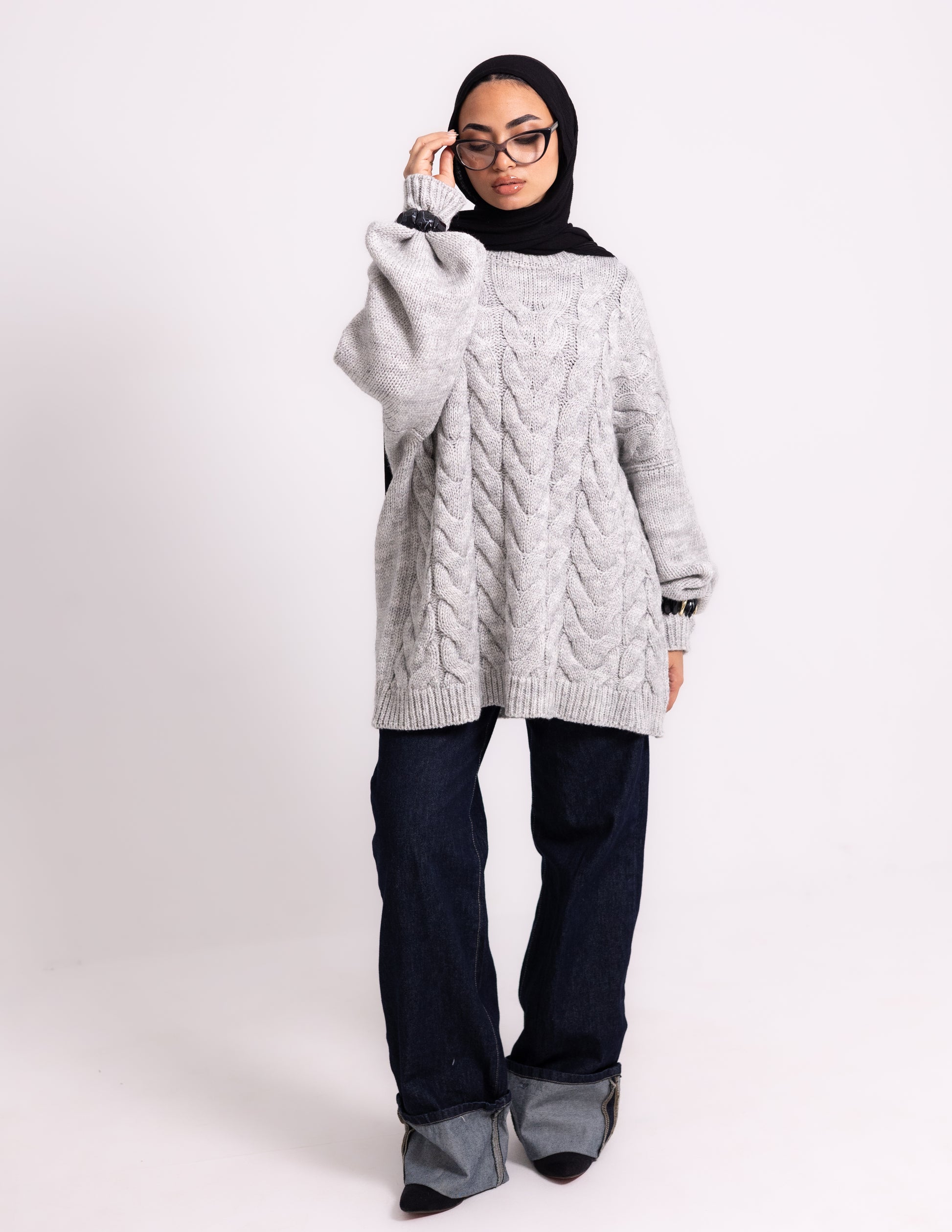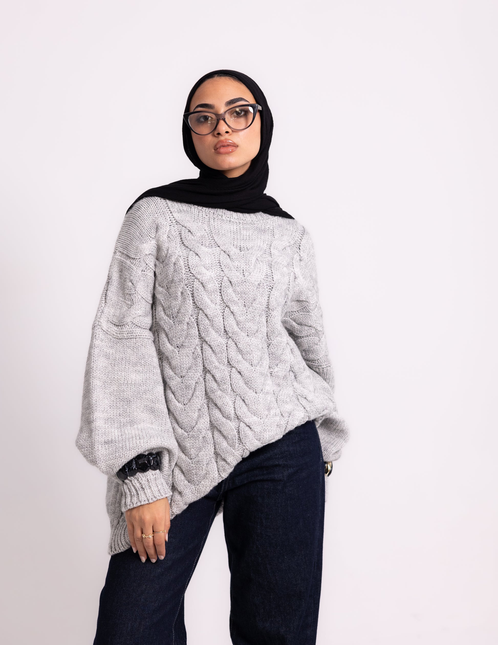 # Braided Knyt Pullover – light grey Elevate your everyday wardrobe with this versatile braided knit pullover in soft baby blue. The intricate braided texture adds visual depth and tactile interest, making it an effortless choice for layering or wearing solo. Perfect for casual outings, work settings, or relaxed weekends, this piece transitions seamlessly across seasons. The neutral blue tone pairs easily with neutrals and prints alike, ensuring maximum styling flexibility. Crafted for comfort and durability, it's a timeless staple that rewards repeated wear.