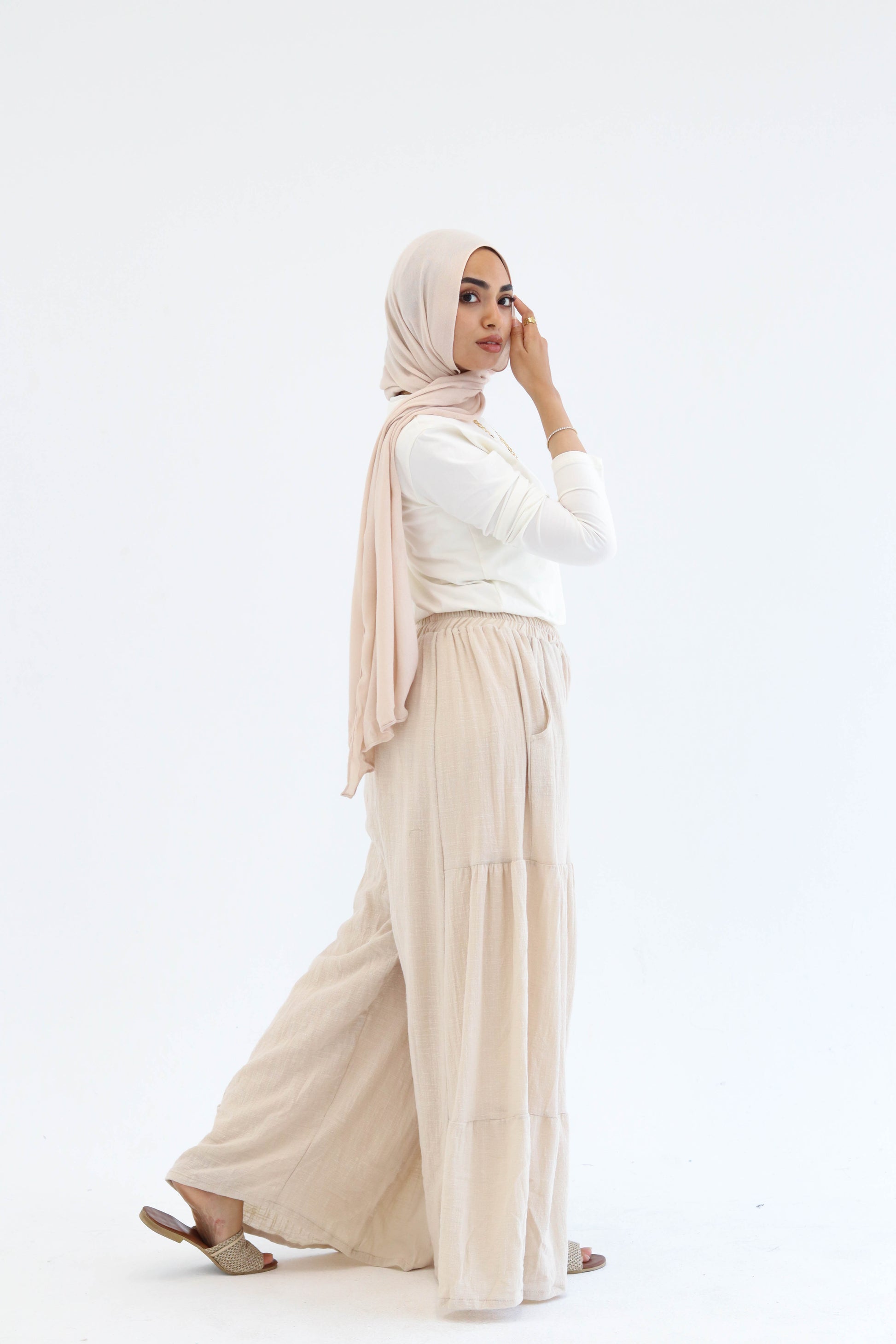 Experience ultimate comfort and effortless style with the Light-Beige Wide Leg Pants. Crafted from breathable linen, these pants offer a loose fit and wide leg design that enhances airflow and freedom of movement. Ideal for warm weather, they combine relaxed elegance with practical comfort, making them a versatile addition to any wardrobe..